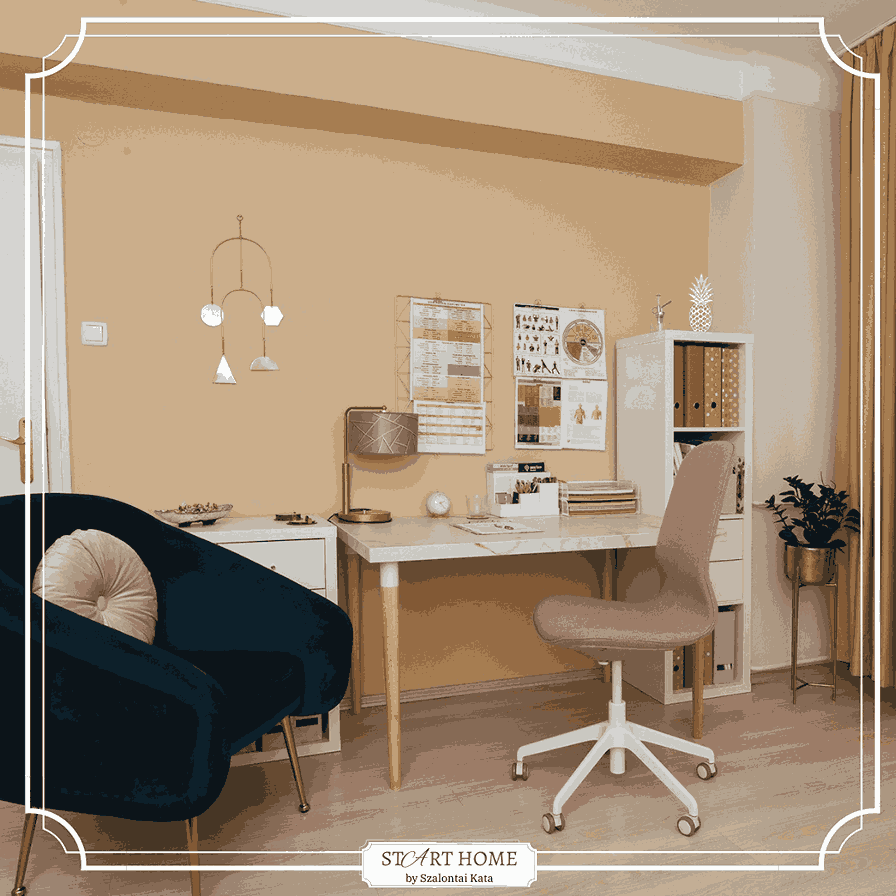 Az iroda esztétikai megjelenésének egyedisége ez esetben a falmatricák, polcok és dísztárgyak kreatív alkalmazásában rejlik. Ezek az elemek nemcsak a tér személyességét erősítik, hanem a monotónia megtörésével is hozzájárulnak a kellemes munkakörnyezethez. Fontos, hogy az iroda ne csak egy hely legyen, ahol dolgozni lehet, hanem egy inspiráló tér is, amelyben a dolgozók jól érzik magukat.